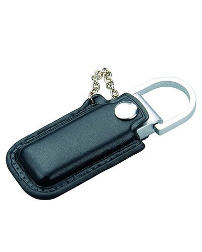 Descrição: Pen drive de couro sintético bolsa , possui parte metálica e detalhes prata(verso liso). Parte inferior possui “argola” para utilizar como chaveiro.