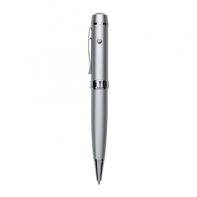 Descrição: Caneta metálica pen drive 4GB/8GB com laser. Carga esferográfica azul. Acionamento por rotação.
