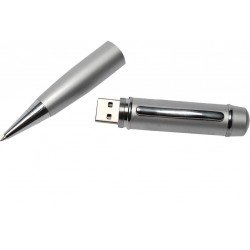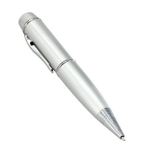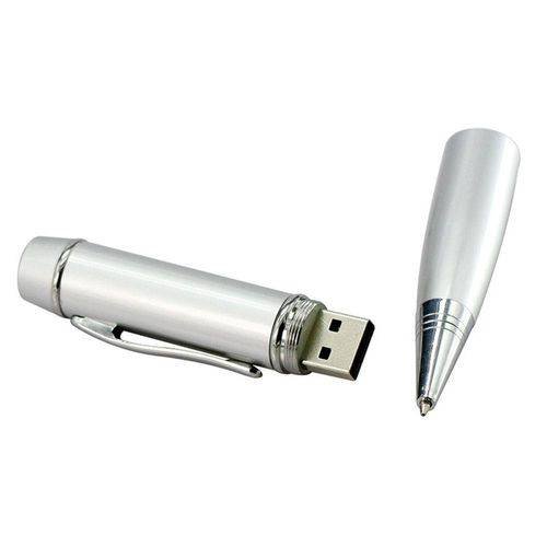 Descrição: Caneta metálica pen drive . Carga esferográfica azul. Acionamento por rotação.